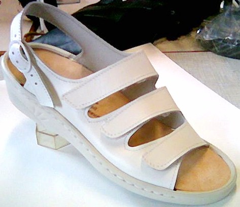 Das Modell Lucia ist eine Keilsohlen-Sandale mit drei praktischen Klettverschlüssen und einer Druckknopf-Schnalle am Fersenriemen und passt sich dadurch sehr gut an den Fuß an.