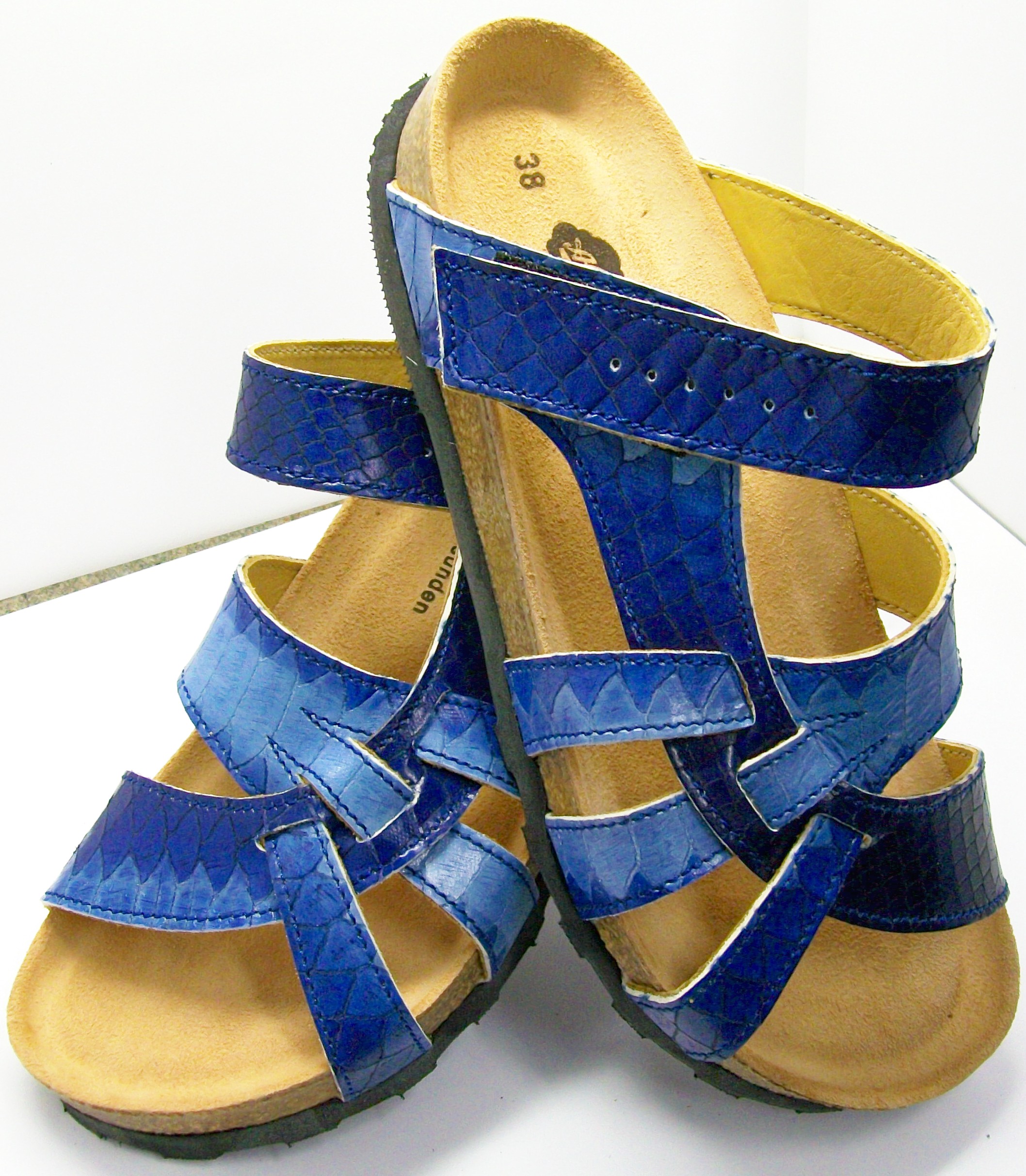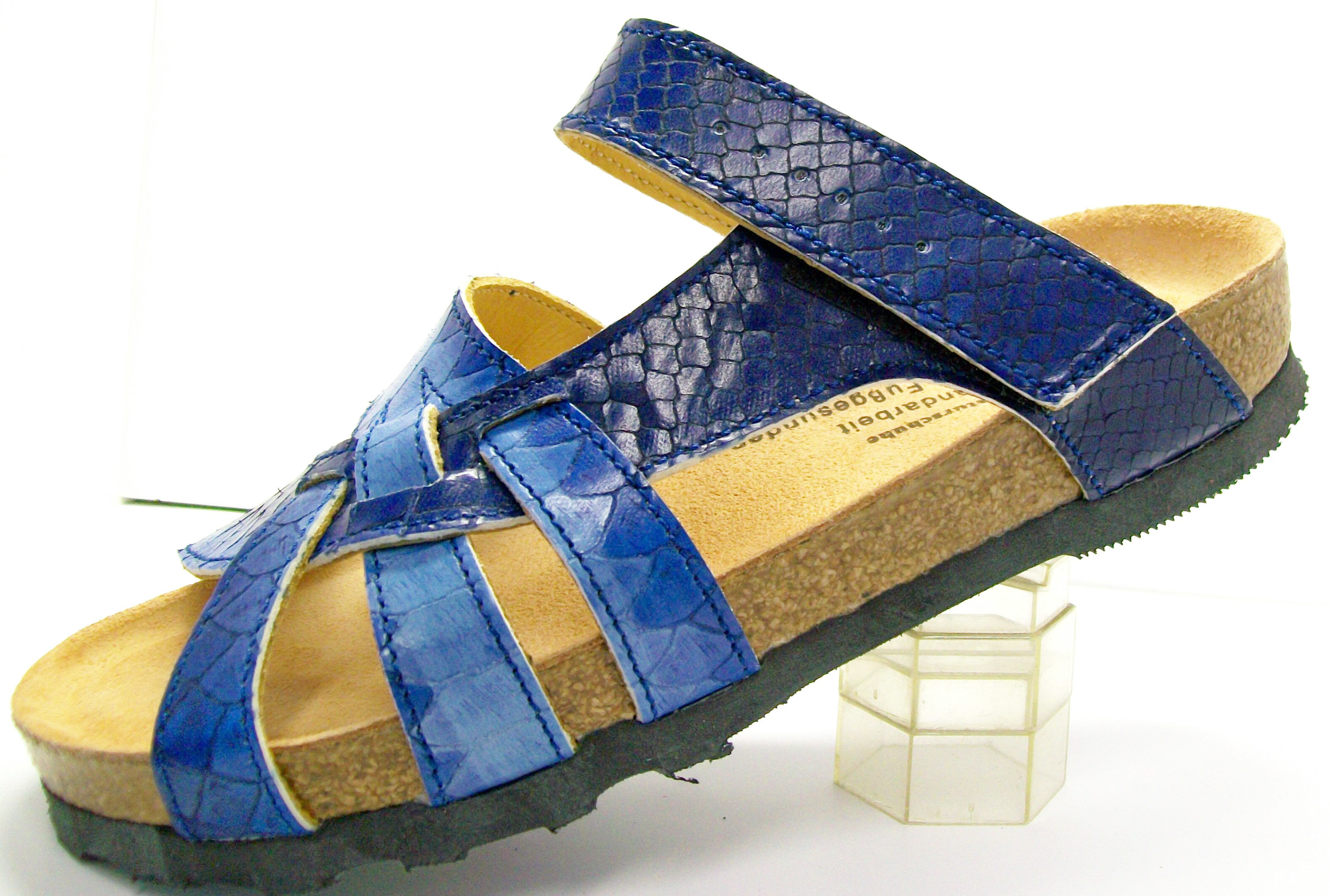 Dieser Damen-Tieffußbettslipper in atollfarbendem Kalbleder, mit Reptilprägung. Die etwas andere Schaftgestaltung, gibt dem Fuß einen sehr guten Halt.
