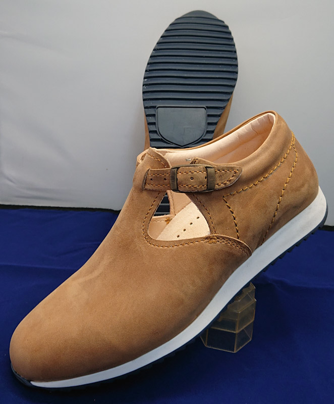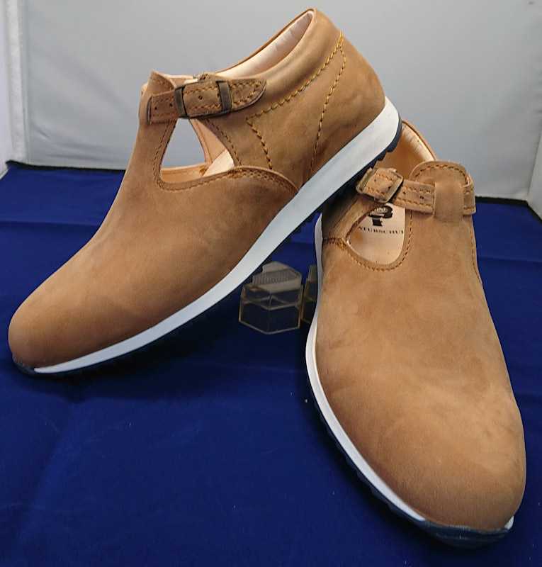Ein schlanker-sportlicher Schnallenschuh mit guter Passform aus anschmigsamen Rindnubukléder mit Druckknopf-Schnallen-Verschluß!